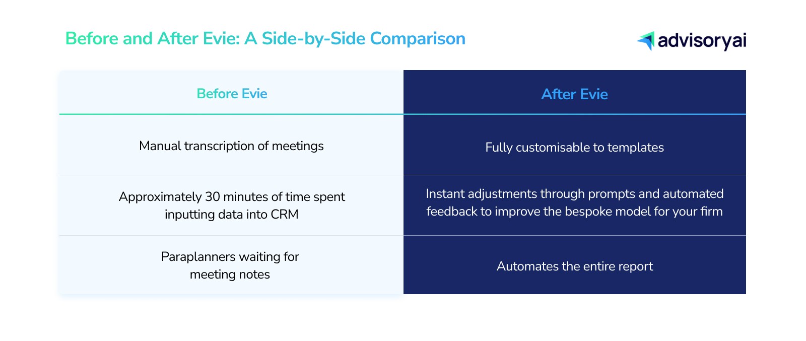 Evie offers significant advantages to both advisers and paraplanners, driving productivity and saving valuable time.