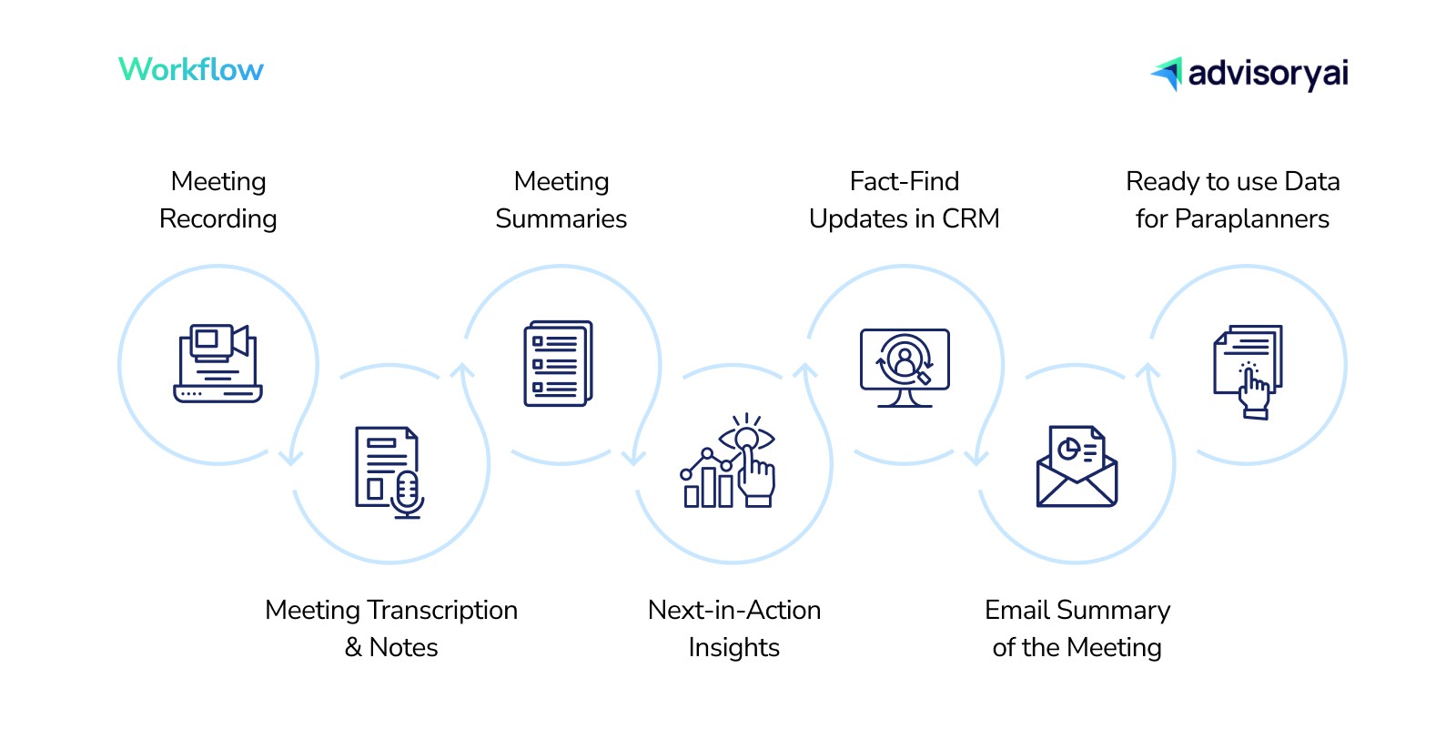 Workflow Integration: All the data from the meeting is ready for the next steps—whether it’s preparing a suitability report, annual review, or a follow-up with the paraplanner.